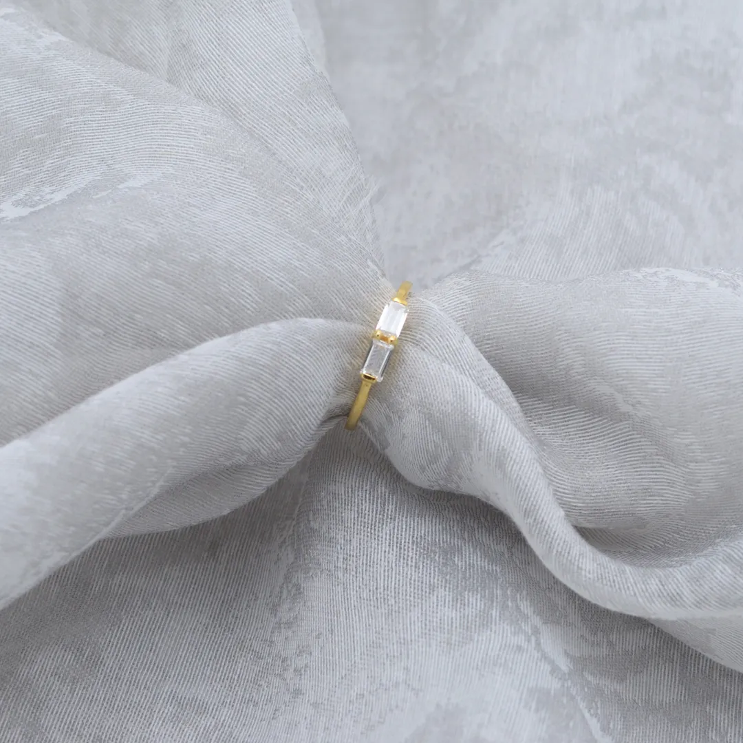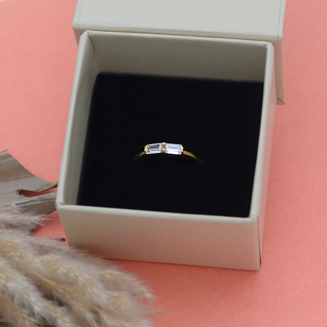 Simple, striking, and undeniably elegant — the Essence Ring captures the heart of timeless design. Crafted from pure 925 sterling silver and finished with a high-polish 18k gold plating, this ring features two baguette-cut CZ stones side by side, offering clean lines and subtle brilliance that elevate your everyday look.